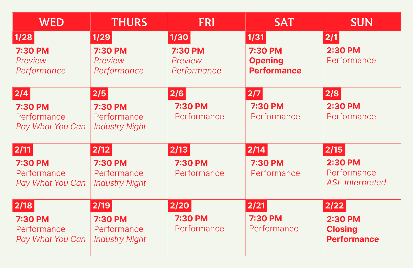 Please Note: This production tackles mature and complex themes and uses strong adult language. We recommend this show for audiences ages sixteen and older.