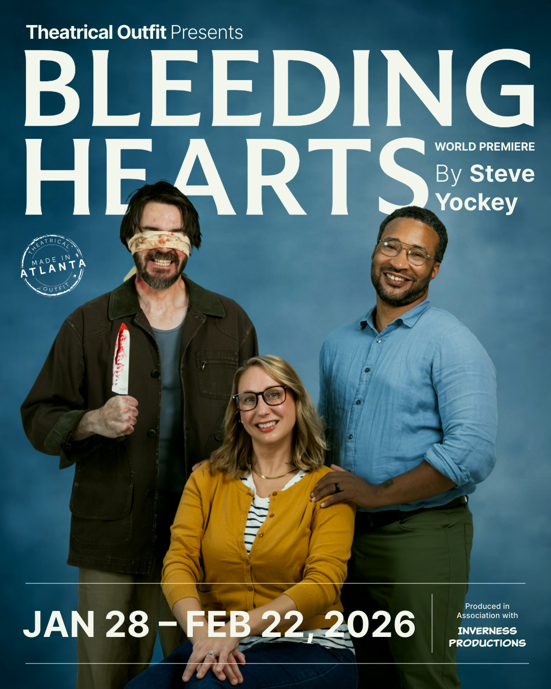 Following the World Premiere of Venus, Atlanta playwright Steve Yockey returns with another World Premiere BLEEDING HEARTS – a breakneck, pitch-black farce about the disappearing middle class & how people forget to put themselves in each others’ shoes. Sloane isn’t sure why exactly her husband Timothy brought home a probably dangerous drifter with a knife, but she doesn’t like it. Of course, it’s hard to focus when her wealthy neighbor keeps dropping by to steal anything not nailed down. Witness the state of the world in a smart, blistering and hilarious way that only Yockey can deliver.